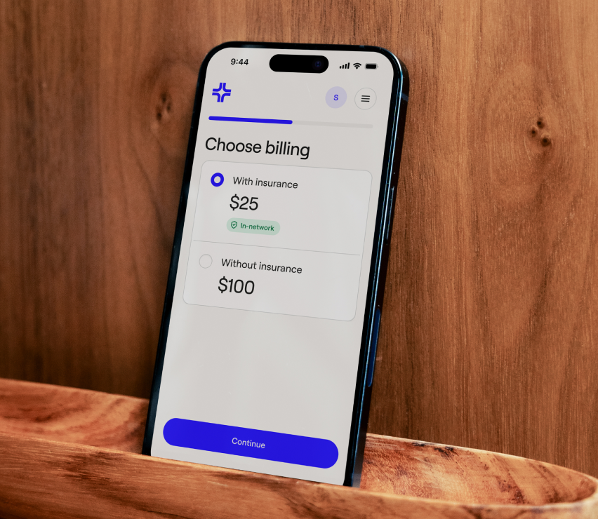 You'll pay per visit for any video or chat visits you book with our team. Most major insurance plans are accepted, but insurance is not required. Prices vary based on the type of care you need, and we'll always provide up front prices with and without insurance before you book—so there are no surprises.